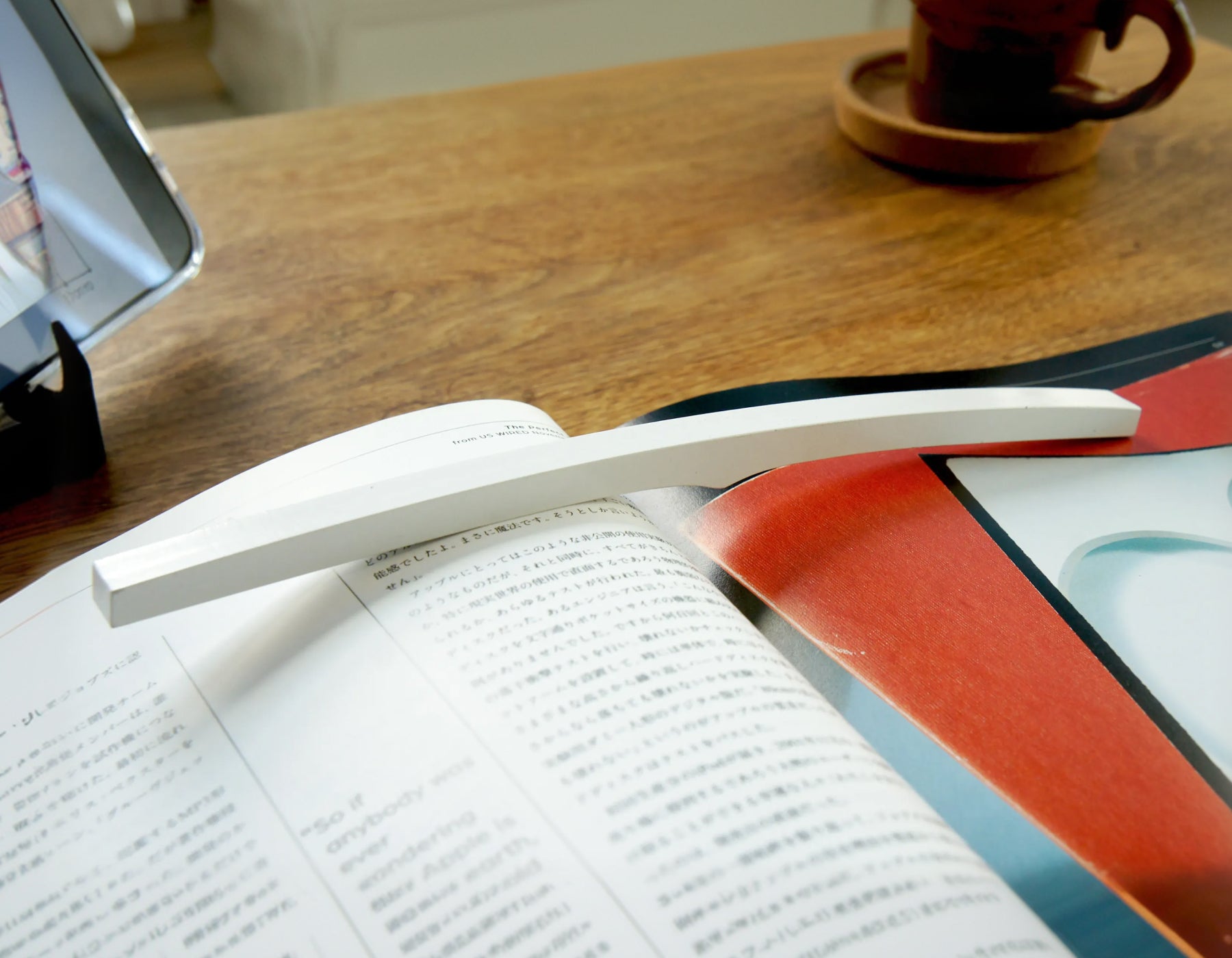 左右均等に置くのはもちろん、厚みのある本の「片側のページ」だけに乗せても、滑ることなくしっかりとホールドします。