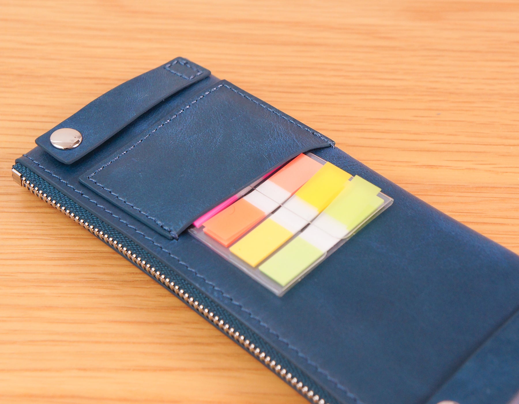 ペンケースを開けずにサッと取り出せるので、よく使ってすぐに取り出したい付箋やしおりを入れるのに便利です。